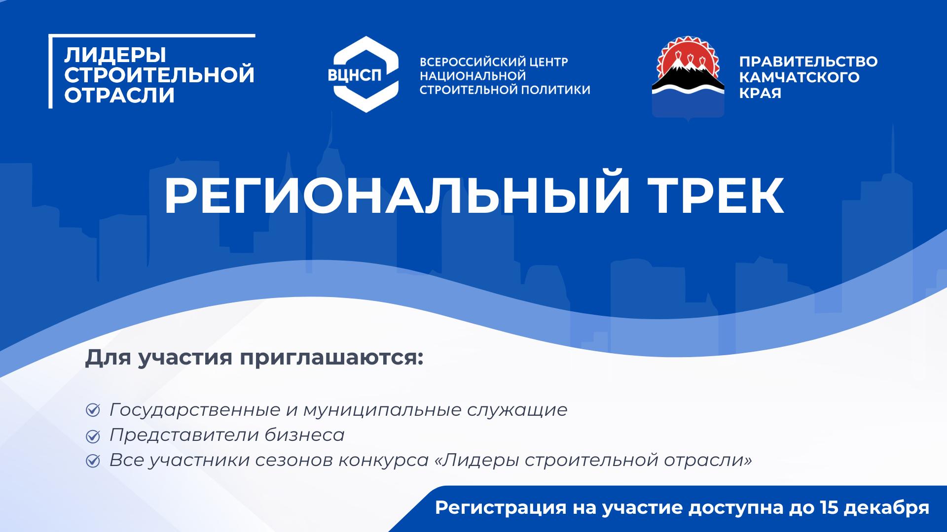 Организационный комитет Всероссийского конкурса управленцев «Лидеры строительной отрасли» совместно с Правительством Камчатского края запускают региональный трек конкурса, направленный на формирование кадрового резерва и замещение вакантной должности Министра строительства и жилищной политики Камчатского края.
